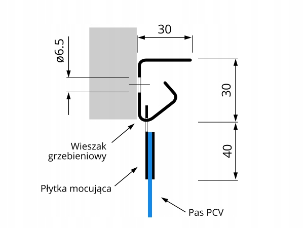 Вішалка-гребінець використовується для підвішування ременів. Цю ж вішалку можна прикріпити до стіни або стелі. Для цього в бічній і верхній стінках вішалки зроблені отвори діаметром 6,5 мм. Вішалки-гребінці можна комбінувати без будь-яких обмежень. Таким чином можна отримати монтажну рейку будь-якої довжини.