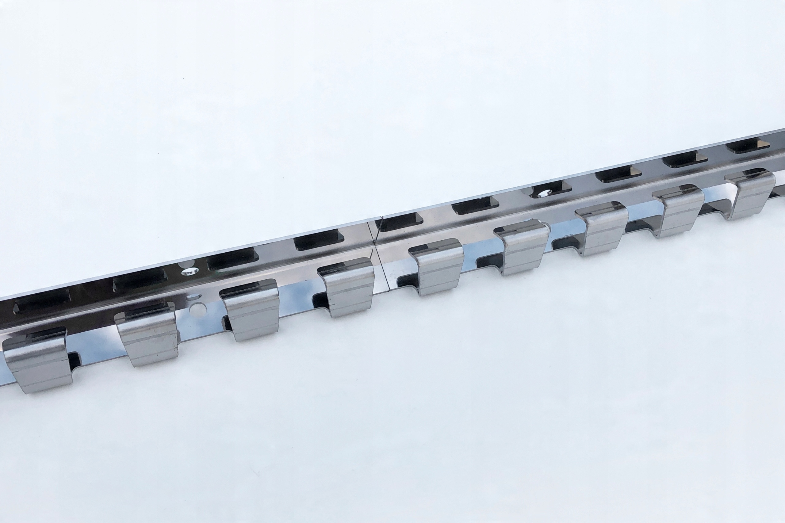 Вішалка-гребінець використовується для підвішування ременів. Цю ж вішалку можна прикріпити до стіни або стелі. Для цього в бічній і верхній стінках вішалки зроблені отвори діаметром 6,5 мм. Вішалки для гребінців можна комбінувати без будь-яких обмежень. Таким чином можна отримати монтажну рейку будь-якої довжини.