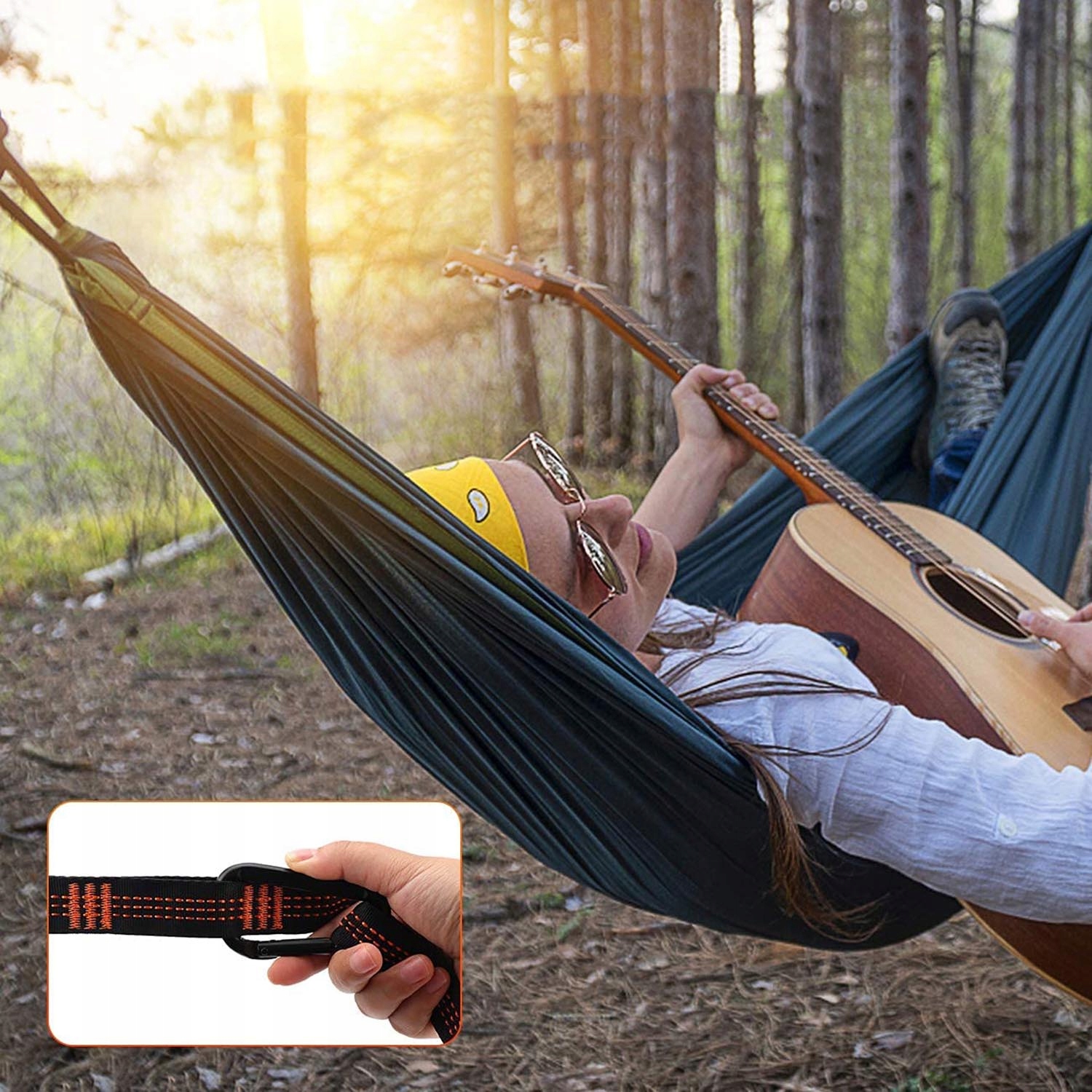 💎💎💎 Матеріал високої якості: 2 ремені хамаків, виготовлені з високоякісного поліестеру, підсилених потрійними швами, смуги сильніші та запобігають тріщинам. 2 карабіни виготовлені з алюмінію.