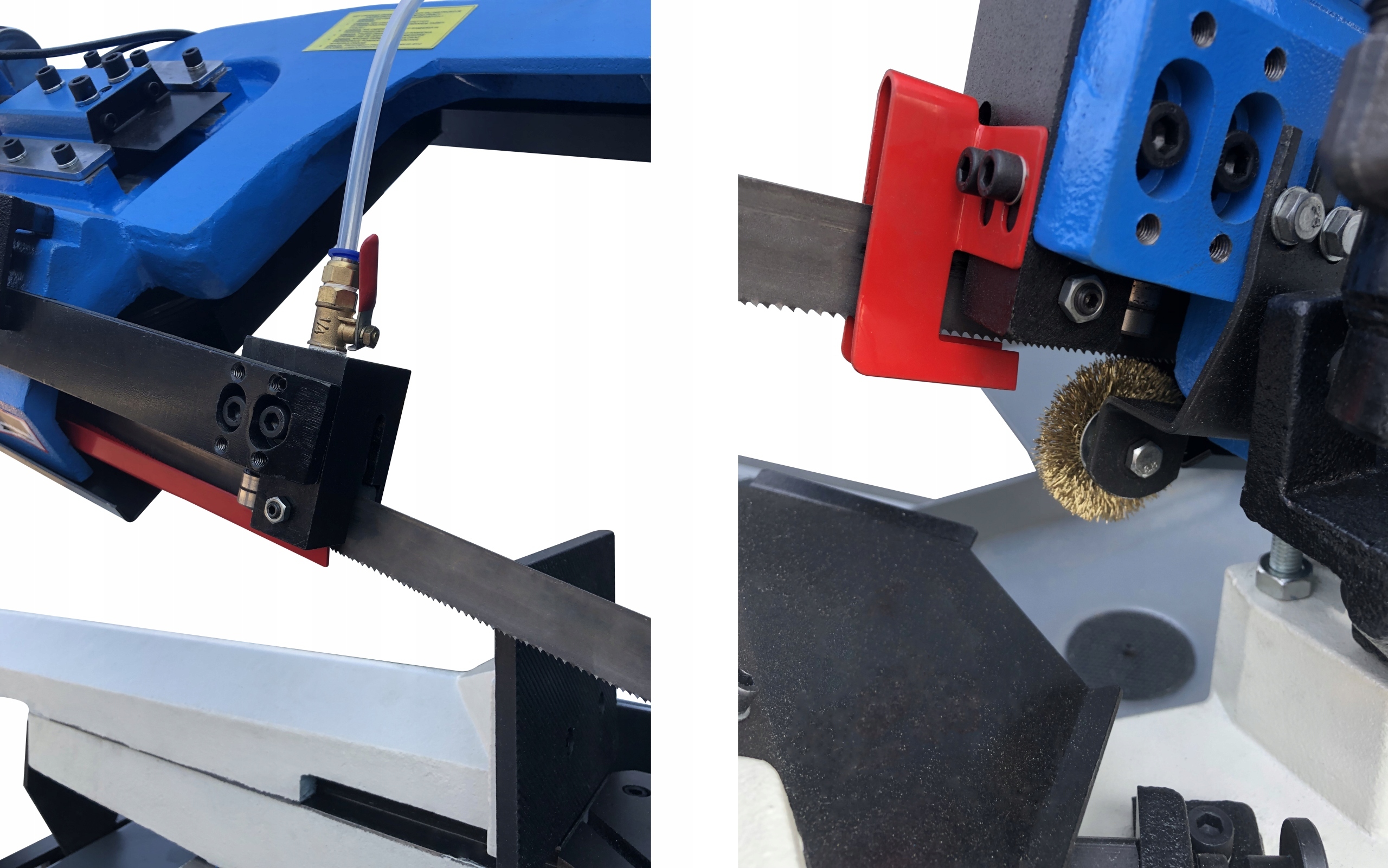 Напрямні підшипники забезпечують безпечне та рівномірне спрямування стрічки в матеріалі, який ріжеться. Крім того, на підшипники встановлені спечені тверді сплави, які підвищують точність серійних різів. Великою перевагою є охолодження ріжучої стрічки, розташоване безпосередньо на напрямній.