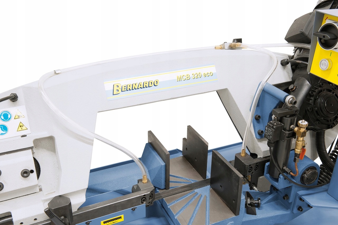 Стрічковий різак MCB 320 ECO BERNARDO - економічний і універсальний різак, який забезпечує великі можливості обробки при відносно невеликих розмірах. Надійна пила універсального призначення за дуже вигідною ціною! Ця стрічкова пила ріже під кутом в діапазоні від -45° до +60° > - з поворотним кронштейном, опущеним на гідроциліндр і системою охолодження. Розмір різання до 240 мм (плоско 310x180 мм).