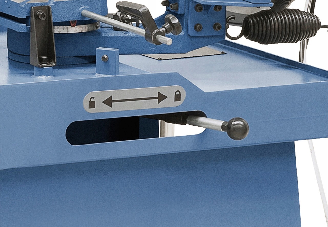 - Безступінчасте регулювання опускання плеча пили завдяки гідравлічному циліндру.