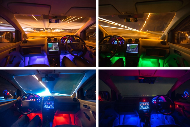Барвисте підсвічування салону автомобіля не тільки декоративно, але й практично. Під час їзди або паркування ввечері та вночі це полегшує пошук предметів у салоні автомобіля.