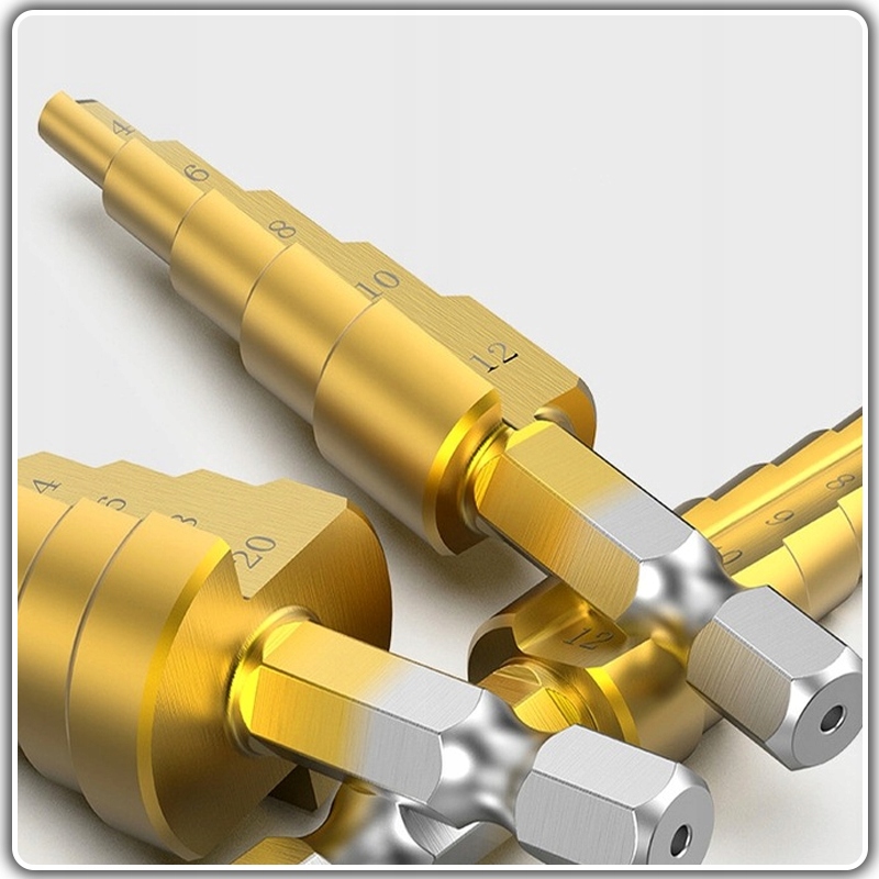 ⭐ руйнівні конічні свердла були виготовлені з високої якості -мул -мул -сталі та покриті титановим покриттям. Попереднє свердління та пориви. HSS.