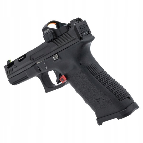 Модульний випуск магазину для вибраних пістолетів Glock Gen3. Набір оснащений двома кнопками вивільнення магазину. Менша класична кнопка схожа на кнопку OEM Glock, тоді як друга має більшу поверхню та текстуру для збільшення захоплення. Конструкція засувки виконана з полімеру, а сама кнопка з анодованого алюмінію. При установці засувки рекомендується скористатися послугами зброяра, але замінити кнопки розблокування можна самостійно. Технічні дані: - вага: 3 г - матеріали: полімер, алюміній 6061 - сумісність: Glock 17, 17L, 19, 22, 23, 24, 26, 27, 31, 32, 33, 34, 35, 37, 38, 39 GEN 1-3 - колір: червоний