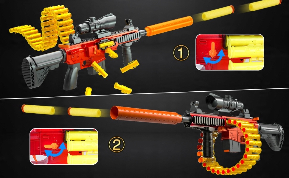 - ІГРАШКА ДЛЯ ЗБИРАННЯ СТРОЙКИ: набір включає ствол, приціл, видошукач, приціл, глушник, рукоятку та 24 обойми для патронів для персоналізації цієї іграшкової зброї M416, яка після зібрання може вміщувати до 31,5 дюйма довжина, що найкраще підходить для дітей, які хочуть зрозуміти структуру зброї, і вони також можуть змагатися зі своїми друзями, щоб побачити, хто зможе зібрати її найшвидше та найкраще.