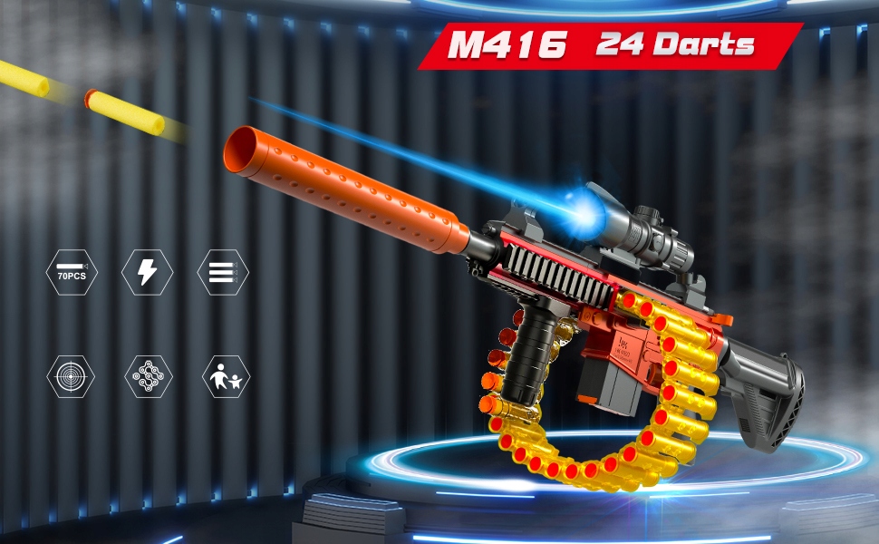- ✈️Ви можете продовжувати битися з ланцюговим магазином на 24 патрони. Насолоджуйтесь стрільбою. Іграшковий пістолет M416 – це вічна класика.