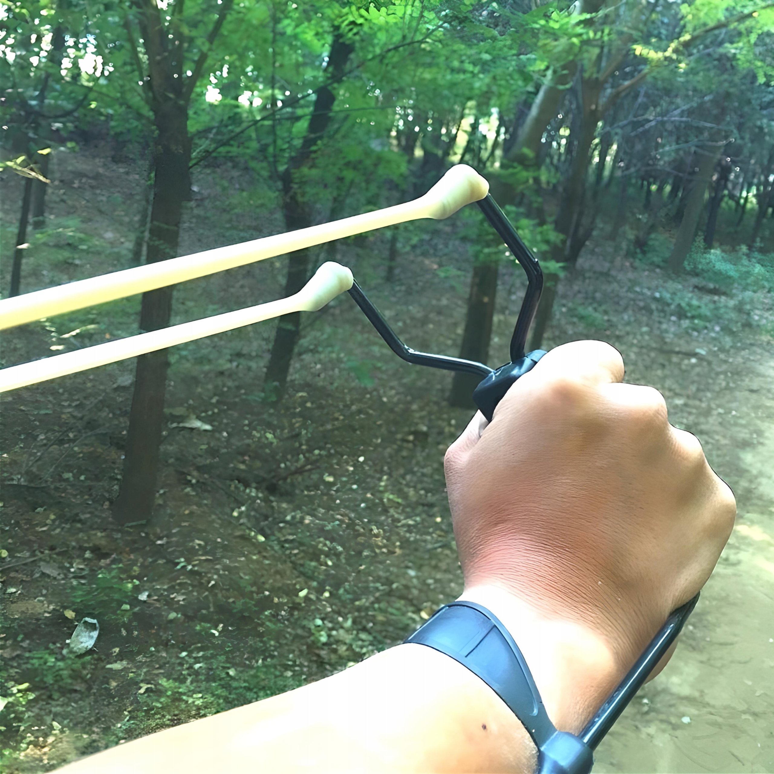 ✔️ Вражаюча дальність - коли гумові стрічки повністю натягнуті, рогатка може стріляти снарядом на відстань до 300 метрів, що робить її надзвичайно ефективним інструментом.
