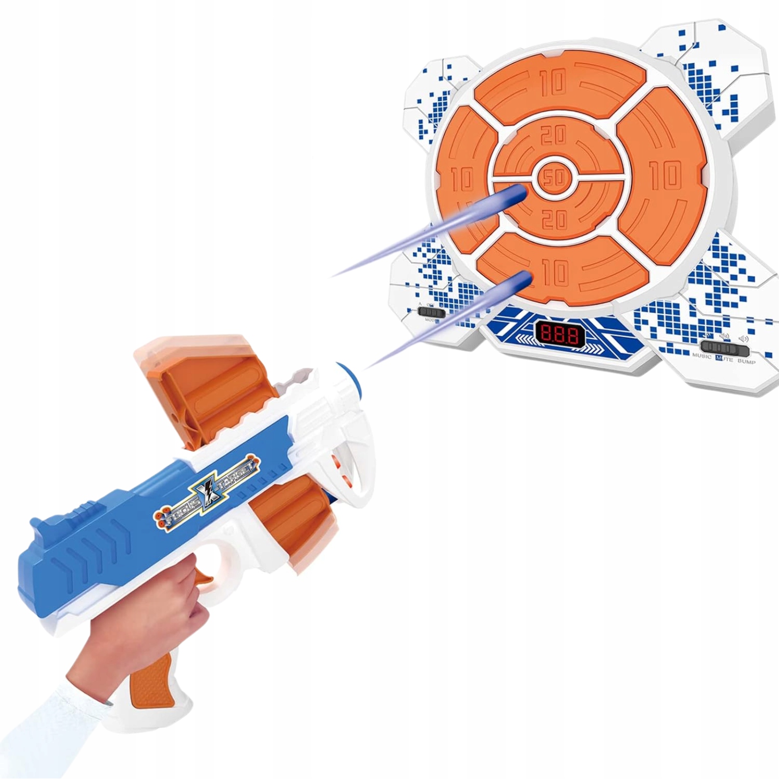 Лічильник очок: щит оснащено автоматичним лічильником очок, який полегшить відстеження результатів, показуючи прогрес кожного гравця в реальному часі. Щоб перезапустити гру та очистити дані, просто натисніть перемикач, і наступні раунди стрільби можуть тривати годинами.