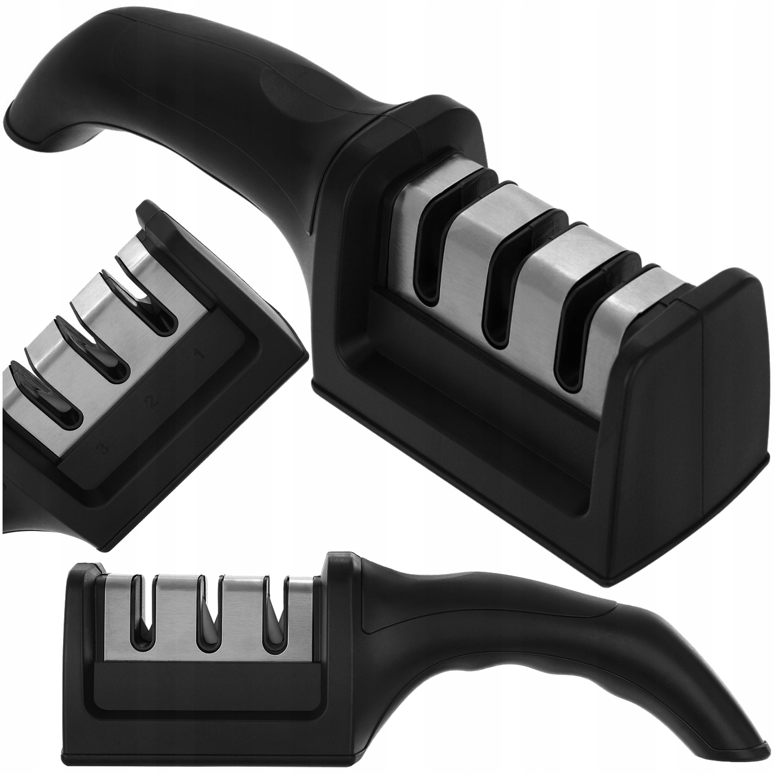 Ручна точилка для ножів має 3 слоти з різними функціями заточування. Кожен із етапів заточування однаково важливий, тому їх не варто пропускати.