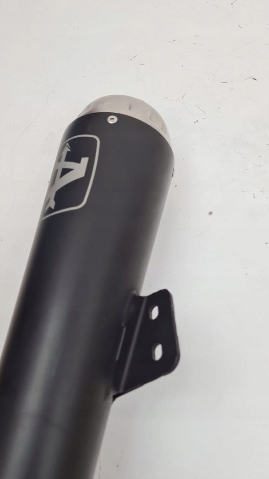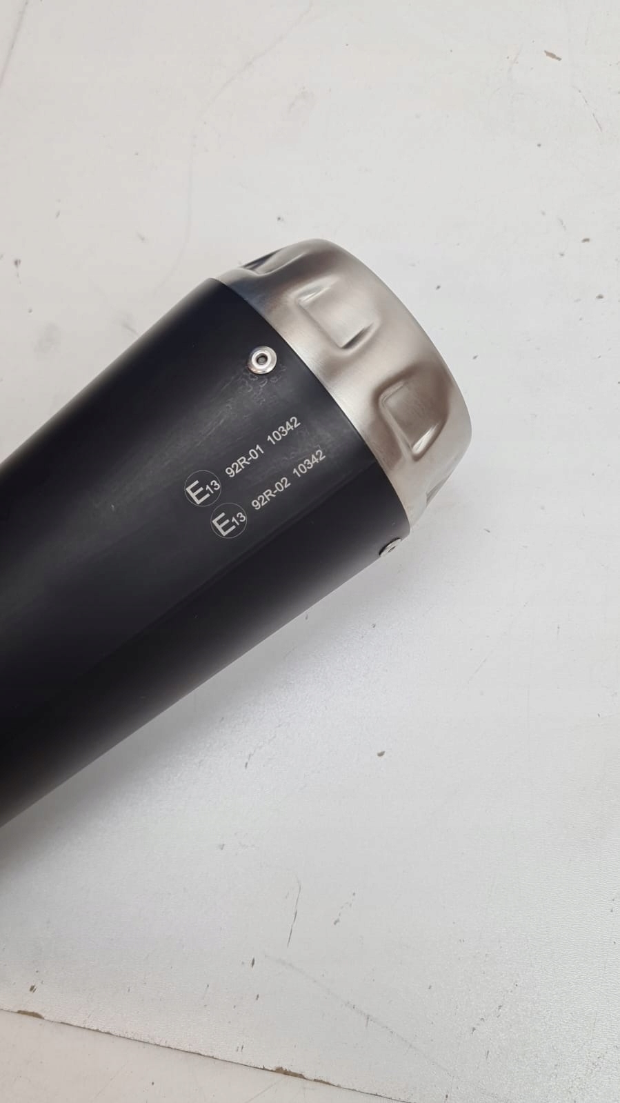 Втомлена упаковка виробника. 4 Виготовлений з високої стійкої до нержавіючої сталі, в елегантному чорному покритті, він поєднує в собі сучасний дизайн з ефективністю. Модель має схвалення доріг , завдяки якому вона може бути юридично використана на дорогах громадськості. Характерна форма "про раси" надає мотоциклу динамічний та агресивний вигляд, і в той же час покращуючи звук двигуна.