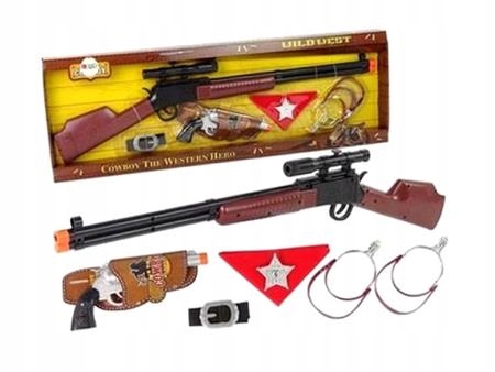 Набір револьверів Cowboy Sheriff Shotgun Дикий Захід у вашому домі! У маленького ковбоя нарешті з'являться власні аксесуари, ідеальні для гри. У набір входить костюм для карнавалу або балу в школі чи дитячому садку. Весь набір містить кілька елементів, які перенесуть вашу дитину у світ розваг. Дві гармати дозволять вам стежити за порядком, як шериф на своєму ранчо! Маленький пістолет видає звуки як справжній, натисніть на спусковий гачок і ви почуєте звук пострілу. Велика рушниця має значні розміри, через видошукач можна прицілитися в ціль і стріляти дуже точно, також чути звук пострілу. Жоден злодій від вас не втече! Аксесуари додадуть серйозності. Вони пробудять страх і перетворять вашого малюка в техаського рейнджера. Взуттєві шпори, ремінь і час розважатися! Набір дозволяє грати разом з однолітками. Ваша фантазія вас не підведе! Всі елементи виготовлені з пластику найвищої якості, що гарантує довговічність. У набір входить: - револьвер - кобура - ремінь - значок - шарф - ковбойські шпори Розміри рушниці: 80 см x 14 см x 3 см Розміри рушниці: 23 см x 10 см x 4 см Розміри упаковки: 84 см х 30 см х 5 см. Призначено для дітей віком від 3 років. Відповідає стандарту EN71 і сертифікації CE.