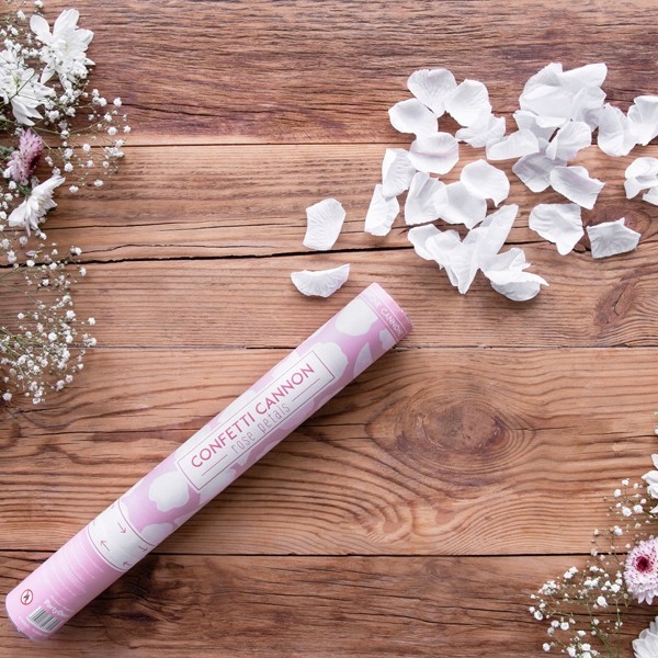 Стріляюча трубка з пелюстками троянд, біла, 40 см