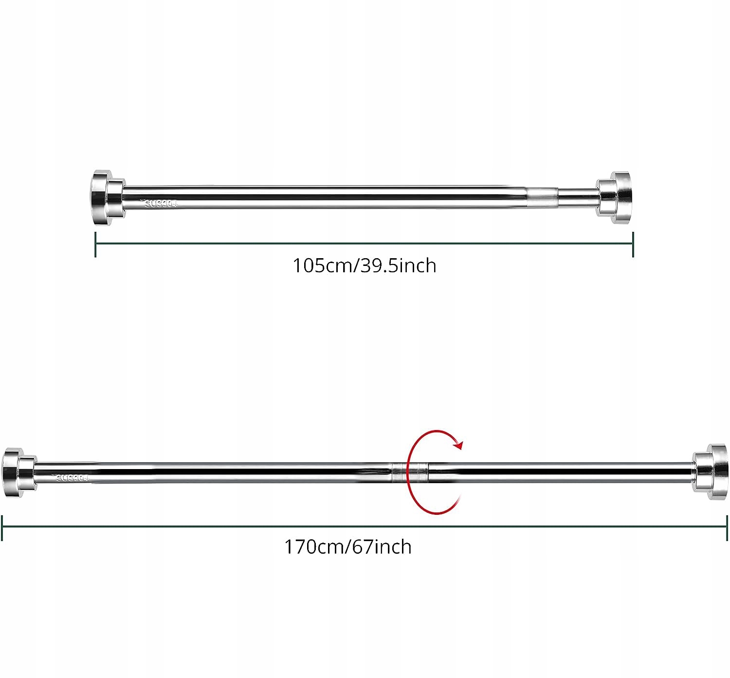 🚿🚿🚿 Регулювання: плавно регульована телескопічна палиця від 85 см до 140 см/від 105 см до 170 см. Тримається при безпечному і стабільному натягу. Діаметр: 5 см - навантаження до 7 кг.
