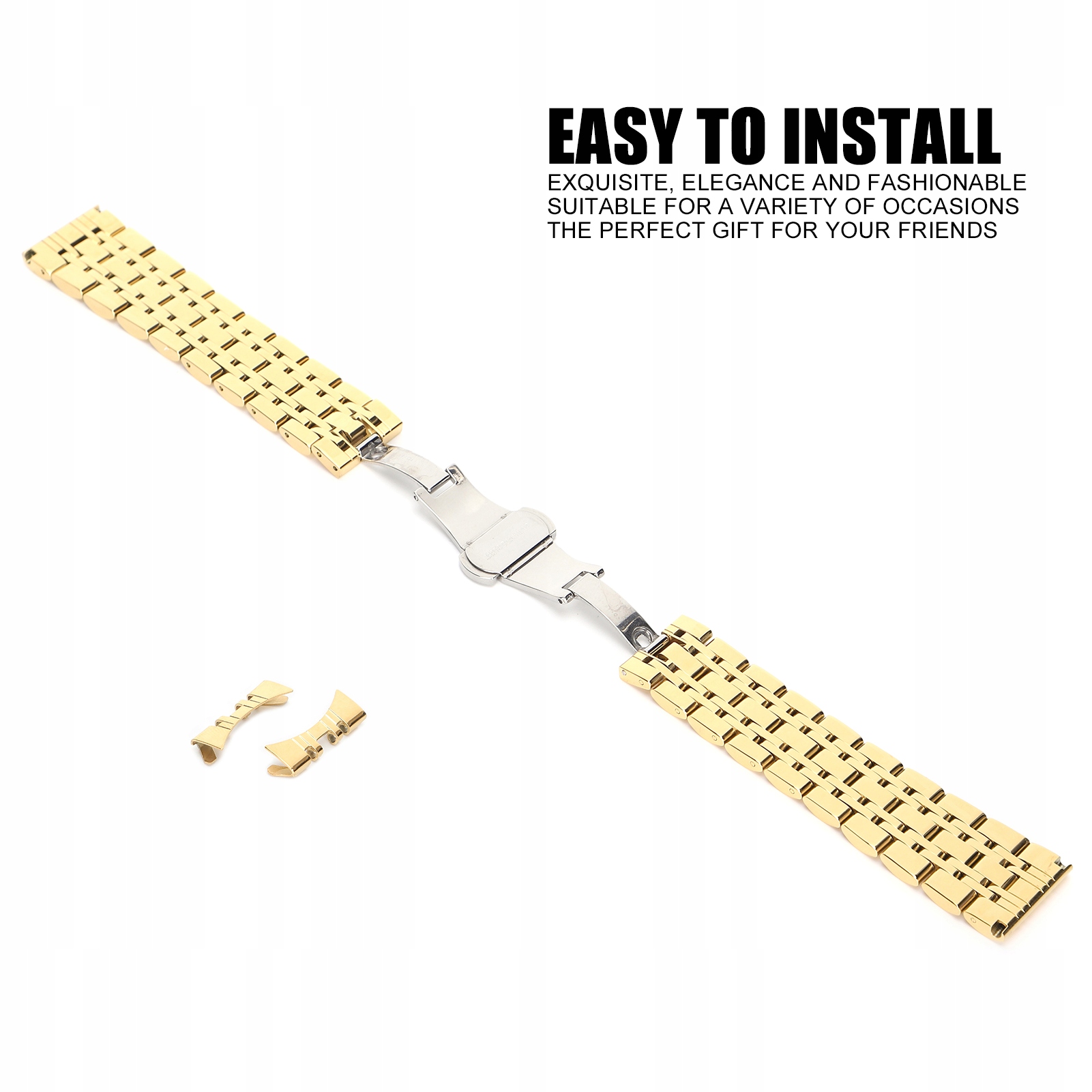 1. Виготовлений з високоякісної нержавіючої сталі, непросто для іржі, дуже міцного і має довге життя. Довжина ременя можна відрегулювати, щоб ідеально відповідати його різним розмірам зап’ястя. Застібка метеликів дозволяє легко встановити та демонструвати, повністю відповідає вашим очікуванням. Відмінна, елегантність та довговічність, достатня для повсякденного використання, роботи, знайомств та стильних для подорожей. Він дуже підходить як подарунок для родини, родичів, друзів, однокласників чи колег.