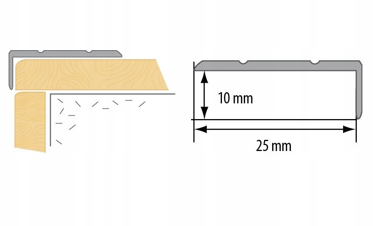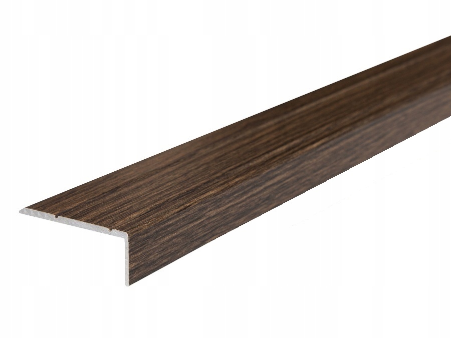 Алюмінієвий профіль, покритий деревним шпоном, захищає краї сходів, покритих деревом або панелями. Смуга покрита дуже міцним ламінатом із високим ступенем стійкості до стирання.