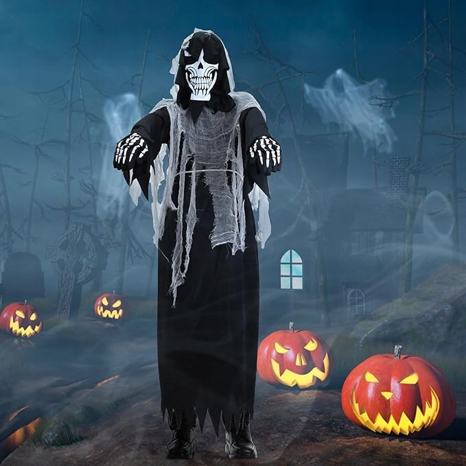 STRÓJ KOSTIUM PRZEBRANIE ŻNIWIARZ ŚMIERĆ Z KOSĄ DUCH NA HALLOWEEN r. L