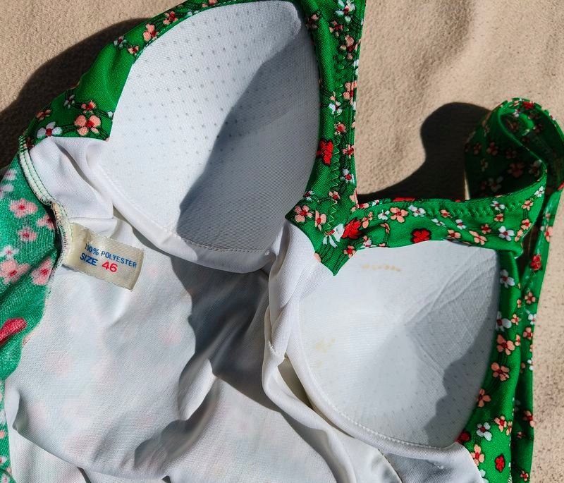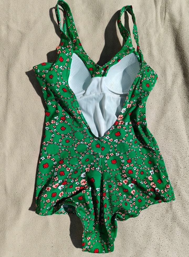 Strój kąpielowy z czasów PRL zielony kwiatki retro