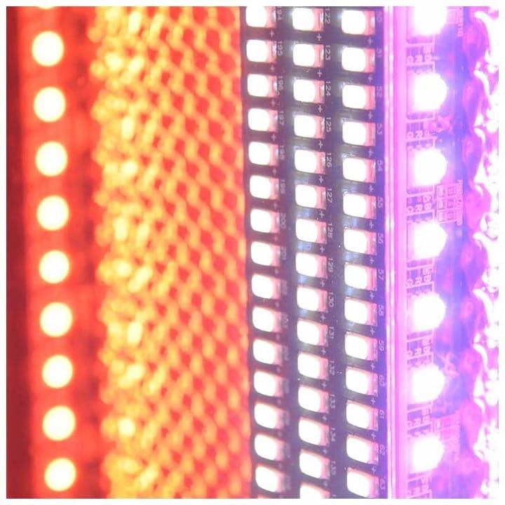 Компоненти рефлектора поміщені в прямокутний корпус. Його лицьова частина являє собою світлову панель, яка працює зі світлом в колірній палітрі RGB (червоний, зелений, синій).