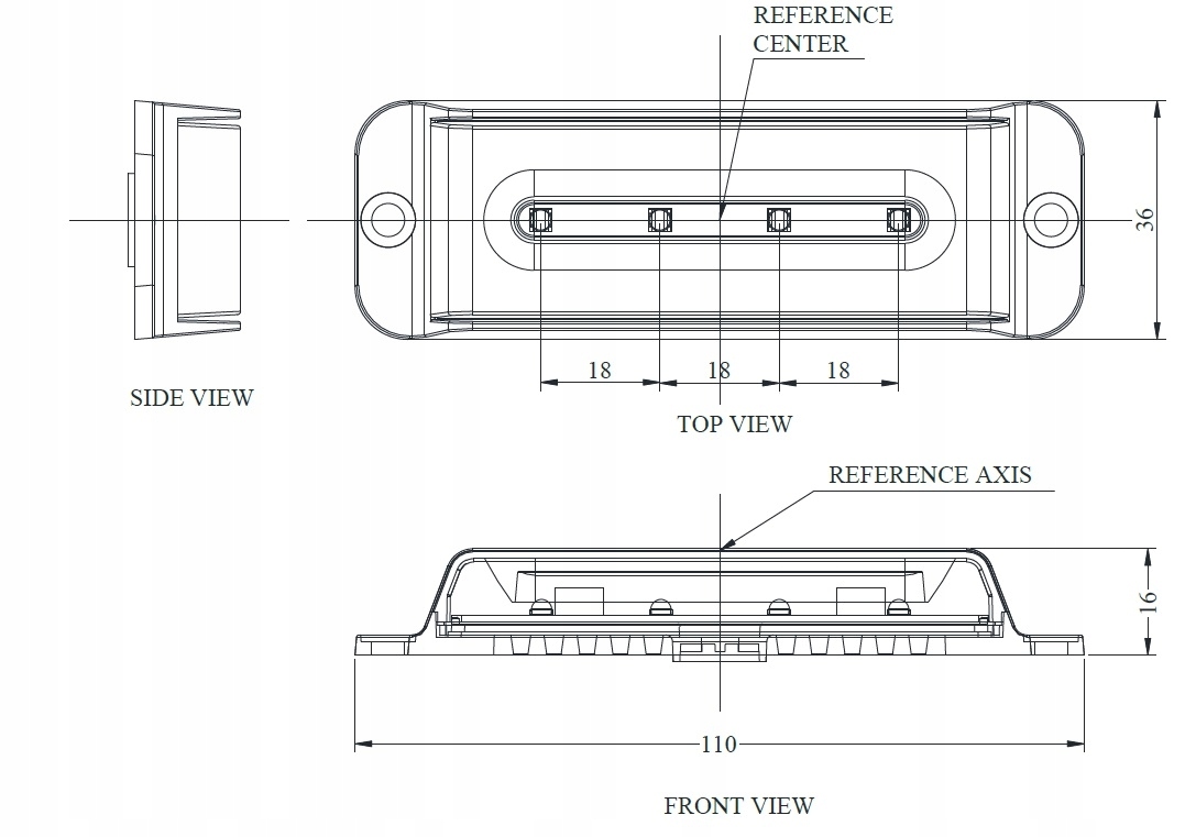 Живлення 12/24 В і два попереджувальні спалахи дозволяють ефективно сигналізувати про присутність автомобіля. Світильник має сертифікати R10 і R65 і клас герметичності IP67, що підтверджує його професійний рівень якості виготовлення. Кабель довжиною 150 мм полегшує підключення в стандартних умовах монтажу.