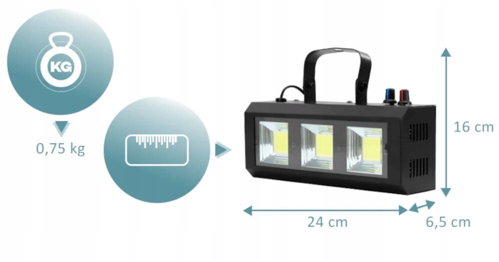 Пристрій простий у використанні - просто підключіть строб до джерела живлення та виберіть бажаний режим роботи. Завдяки регулювання швидкості світла Ви можете адаптувати спалах до своїх потреб, що дозволяє персоналізувати світлові ефекти . Завдяки потужності 65 Вт і трьох світлодіодів, строб випромінює інтенсивне, біле світло, створюючи динамічні та ефективні спалахи, які ідеально доповнюють кожну візуальну установку.