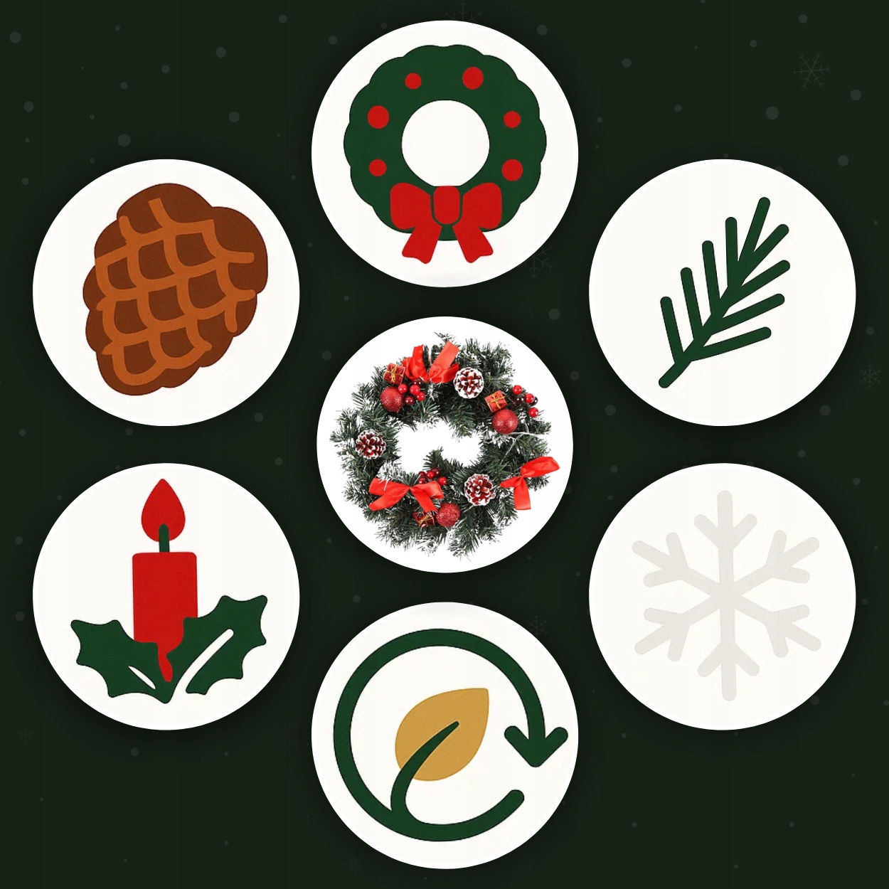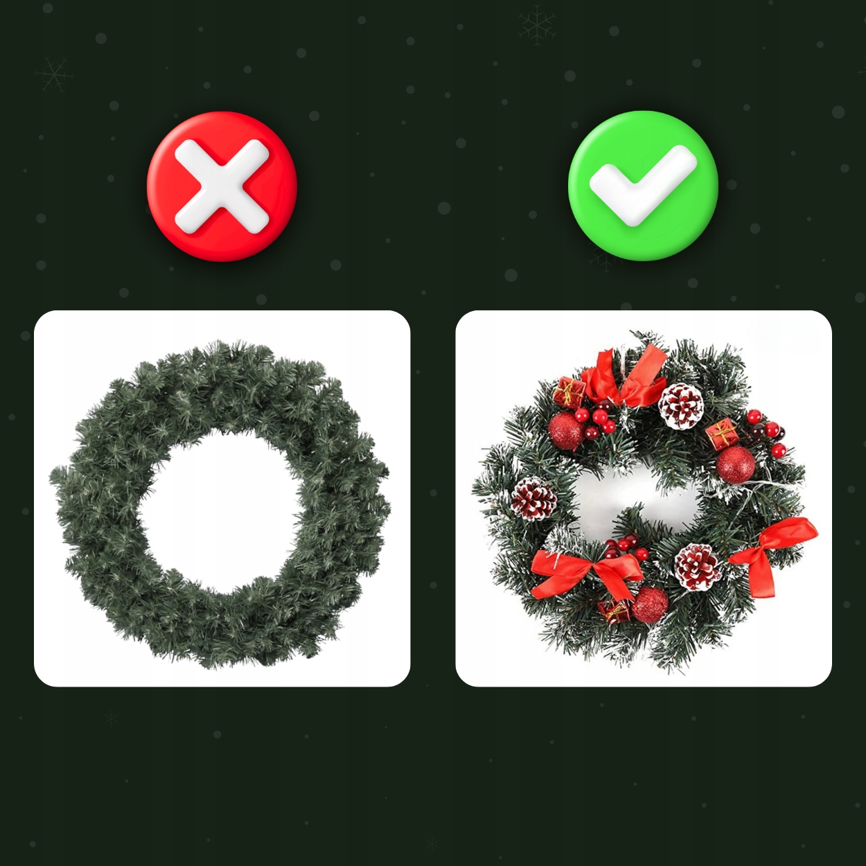 ➡️ РЕАЛІСТИЧНІ ХВОЙНІ ГІЛКИ - виготовлені з високоякісного матеріалу, що точно імітує натуральну хвою ялини. Завдяки їм вінок виглядає багатим і ошатним протягом багатьох сезонів.