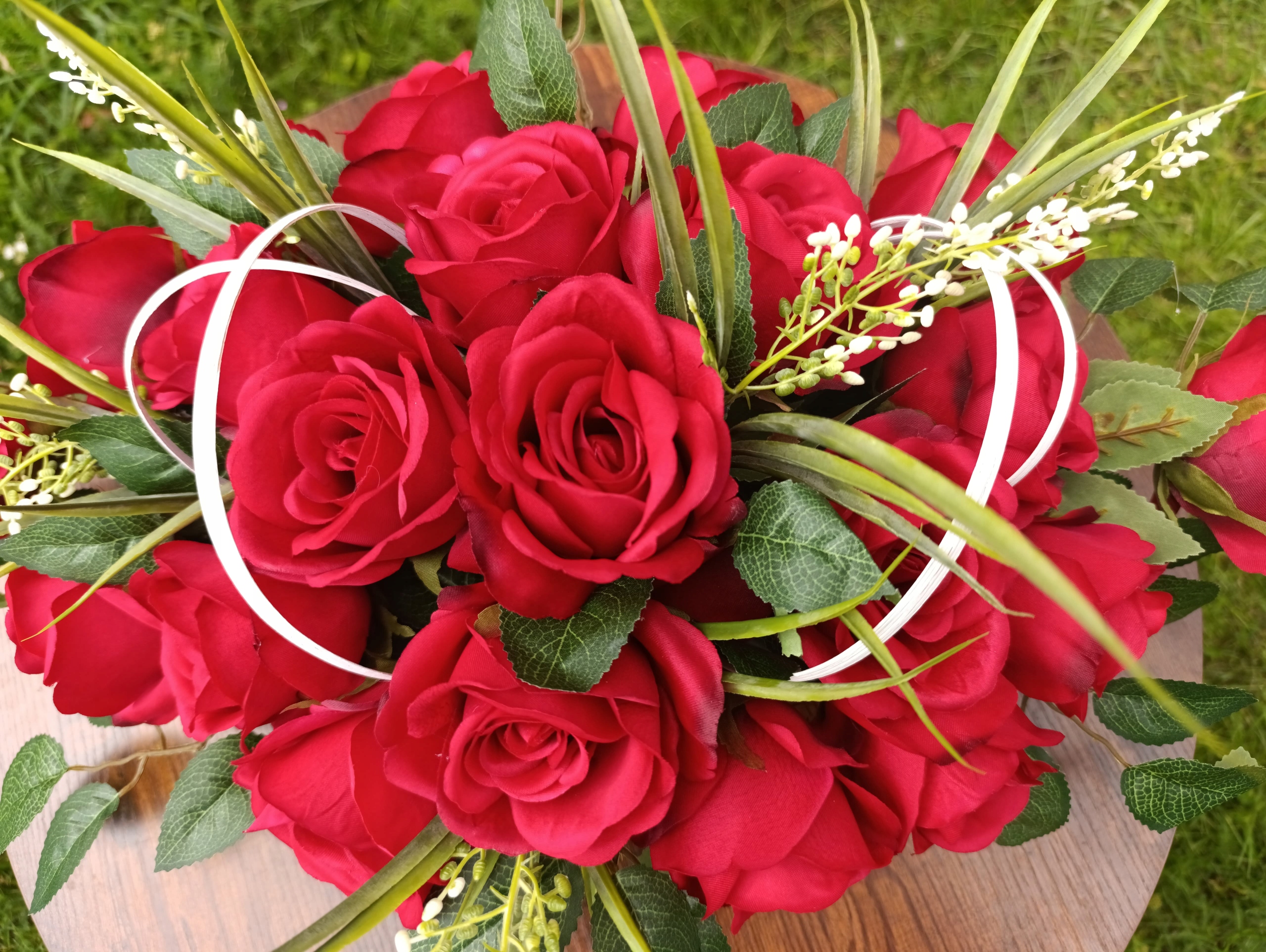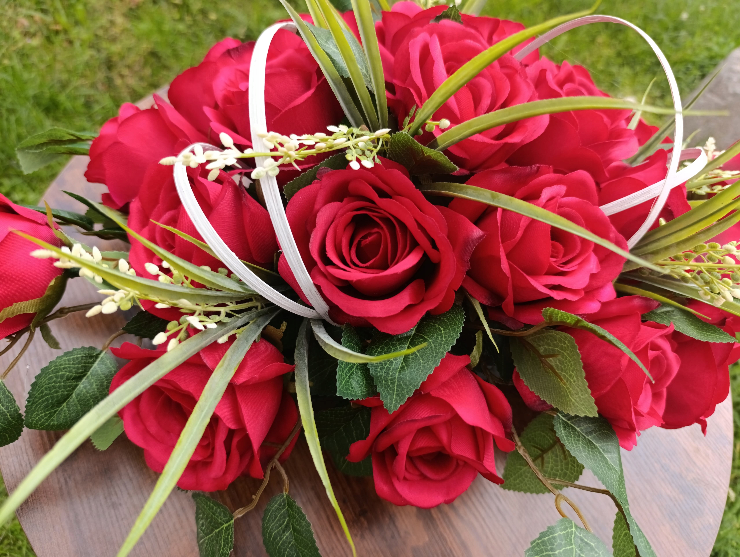 Червоні букетні троянди Преміум троянди Штучні квіти для могили кладовища