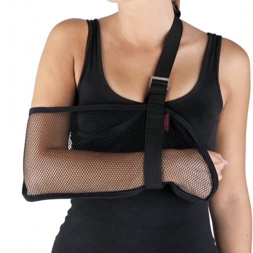 Ліктьово-долонний слінг, з доступом до плечово-ліктьового суглоба. Виготовлена з повітряної, гнучкої сітки, забезпечує безперешкодну циркуляцію повітря та ніжний контакт з кінцівкою. Має ремінь для перенесення з додатковим покриттям, що захищає шию від тиску та стирання, застібається зручною пряжкою, що забезпечує легке регулювання довжини. Пояс проходить по діагоналі спини, забезпечуючи рівномірний розподіл навантаження.