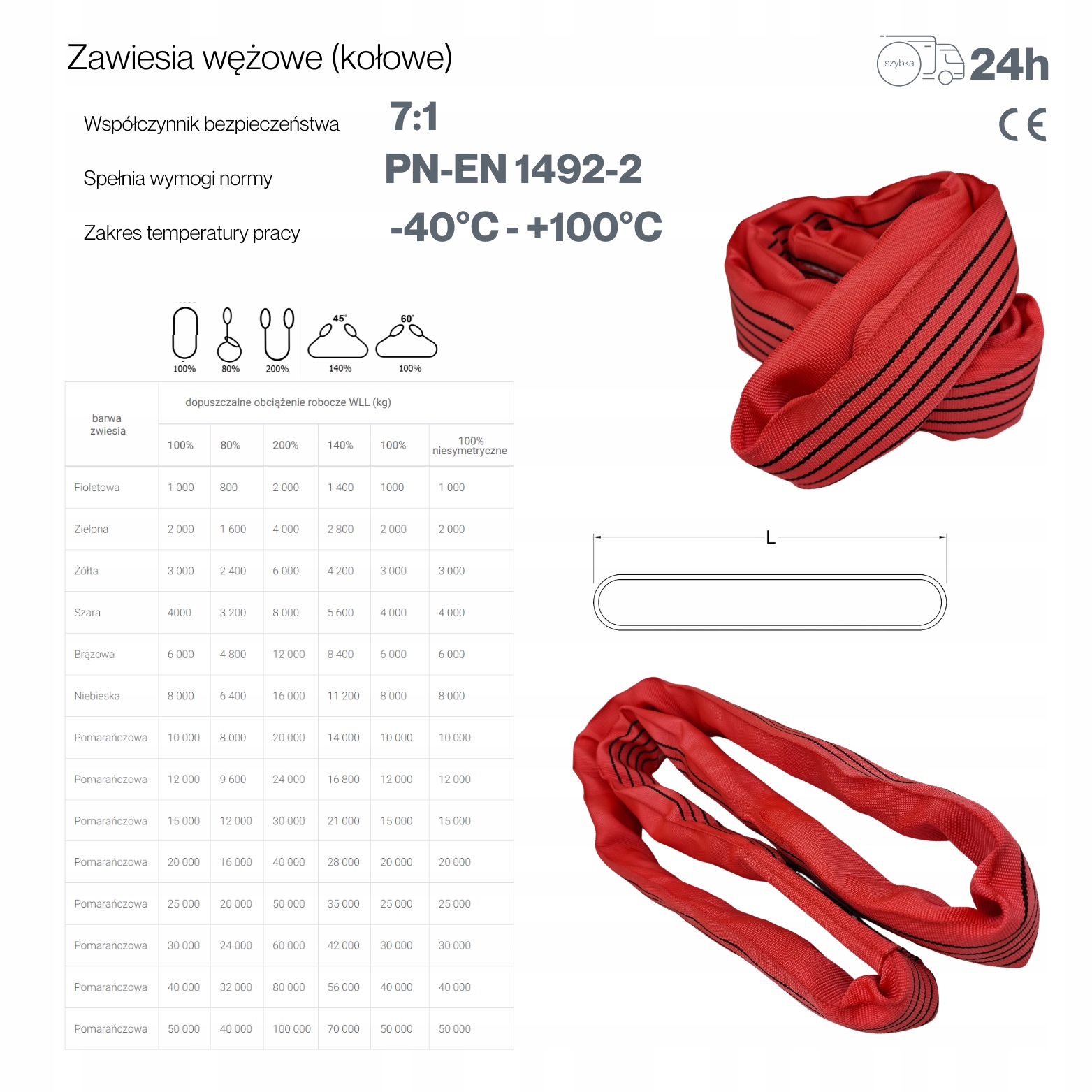 - Сертифікація: Усі стропи мають підтверджені сертифікати Сертифікат якості та табличка відповідності стандарту EN 1492-2:2000.