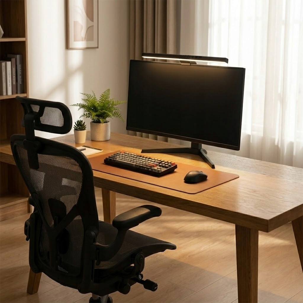 Три відтінки білого дозволяють точно підібрати освітлення до ситуації. Теплий білий 3000K підтримує вечірнє використання та роботу вночі, нейтральний 4300K добре підходить для повсякденних завдань, а холодний білий 6400K полегшує концентрацію під час інтенсивної роботи. Регулювання яскравості дозволяє підтримувати збалансоване світло, яке не домінує на екрані та залишається зручним для очей.