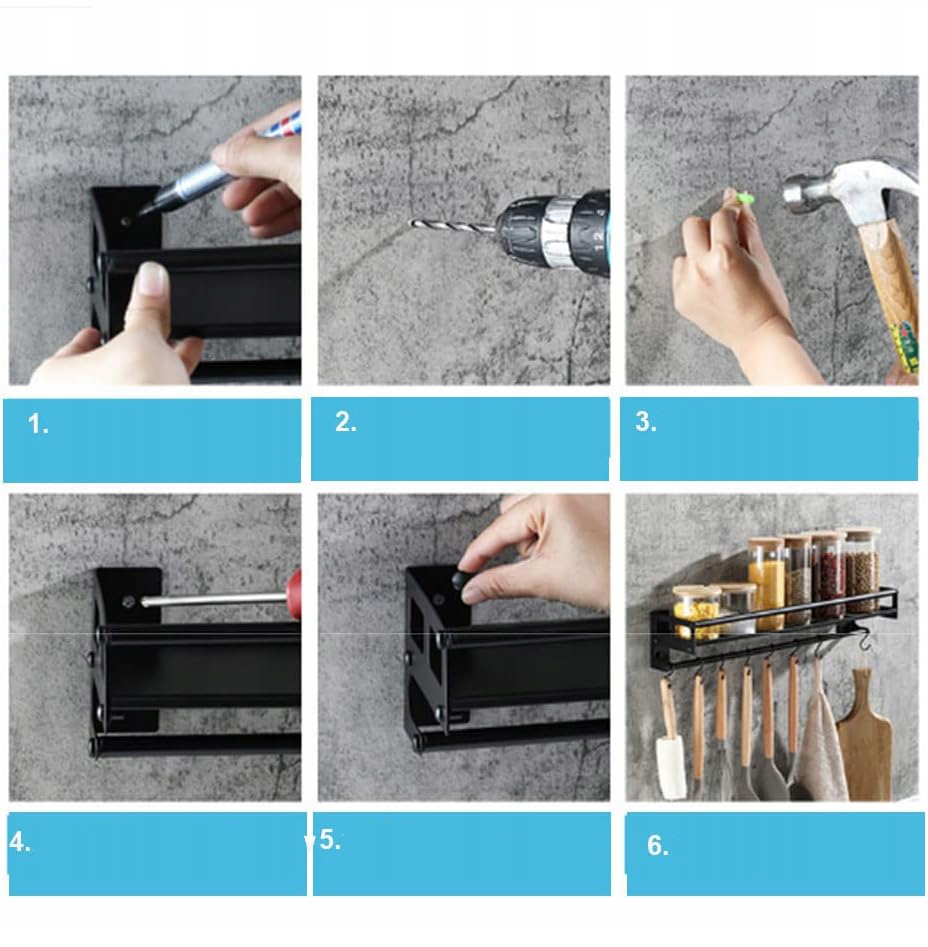 ✨✨【Хороша несуча здатність】 Настінна кухонна вішалка Максимальна навантаження при монтажі без свердління становить 6 кг, навантаження при свердлінні — 10 кг.