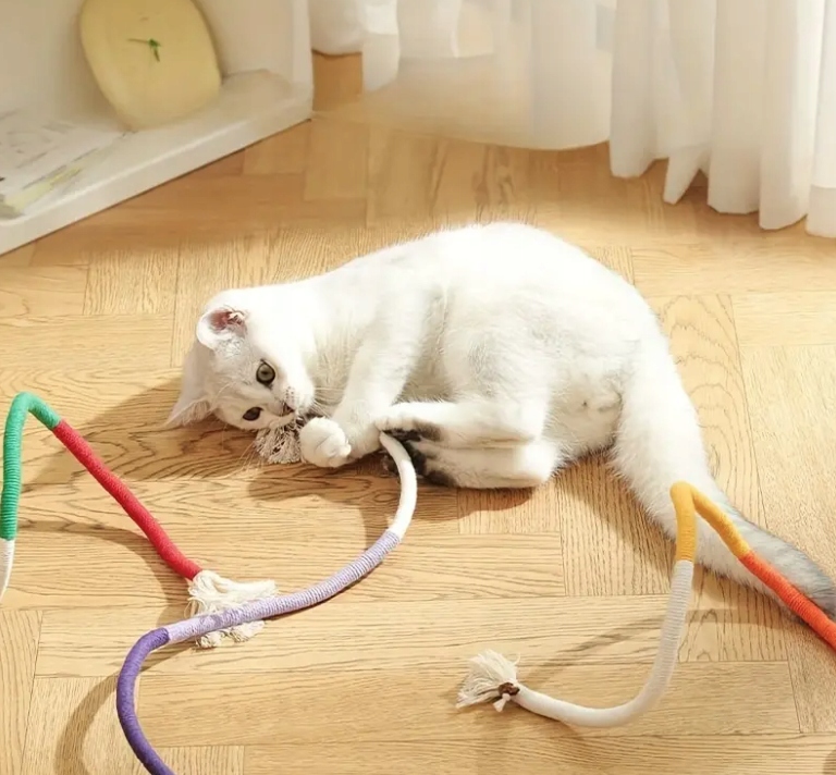 ✅L може служити окремою іграшкою - як шланг або може бути згорнутий у вузол , що іграшка трохи змінює форму і є ще більшою привабливістю для кота.