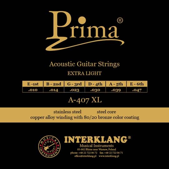 Strune Prima A-40780/20 Бронза, також відома як латунь, це матеріал, який використовується в акустичній гітарі струнних з 1930-х рр. ст. Ці струни часто вибирають для запису завдяки їх яскравому, але глибокому звучанню. Всі струни для акустичної гітари Prima намотані на шестигранний сердечник з високовуглецевої нержавіючої сталі, що гарантує яскравий і міцний звук і ідеальне інтонування. Додатковою перевагою є запасна струна E1.