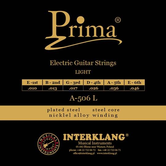 Струни для електрогітари Prima з нікельованої сталі. Вони мають глибоке звучання, характеризуються тривалим терміном служби та високим співвідношенням ціни та якості. P-506 намотані на шестикутний сердечник з високовуглецевої нержавіючої сталі, що гарантує ідеальну інтонацію та яскравий, міцний звук. Додатковою перевагою є додаткова струна E1, що входить до комплекту.
