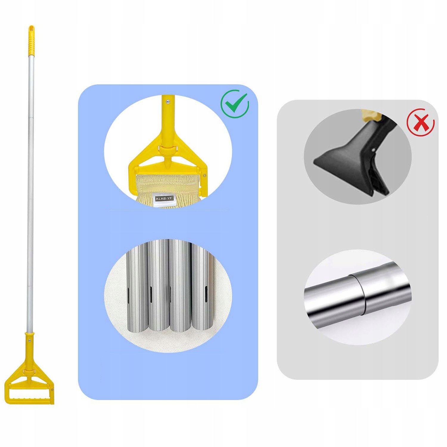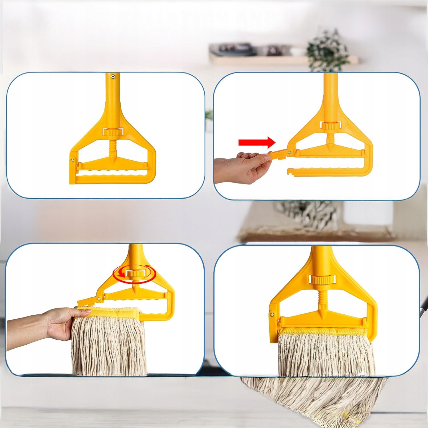 Ця надміцна швабра має вдосконалений кільцевий затискач, який надійно тримає головку швабри на місці, що робить її довговічнішою та стабільнішою, ніж інші пластикові затискачі. Це означає, що вам ніколи не доведеться турбуватися про те, що головка швабри впаде або розв’яжеться під час використання. Легко збирається та розбирається, сумісна з більшістю швабр, таких як бавовняні швабри, нитки, круглі швабри та швабри з мікрофібри.