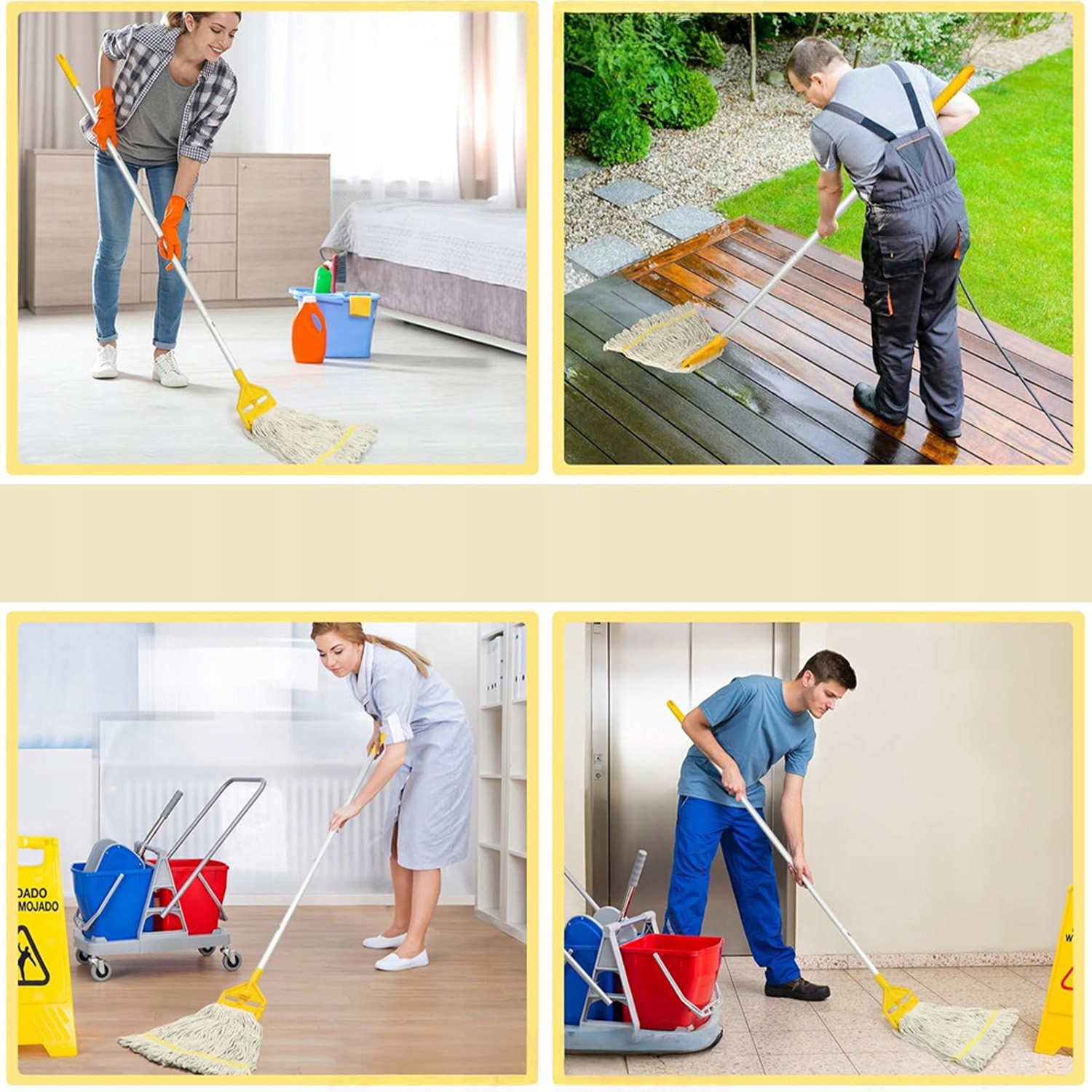 Наша промислова швабра для підлоги має потовщену алюмінієву ручку, яка є міцнішою та довговічнішою, ніж інші швабри. Довга ручка дозволяє зручно чистити у вертикальному положенні, зменшуючи навантаження на спину.