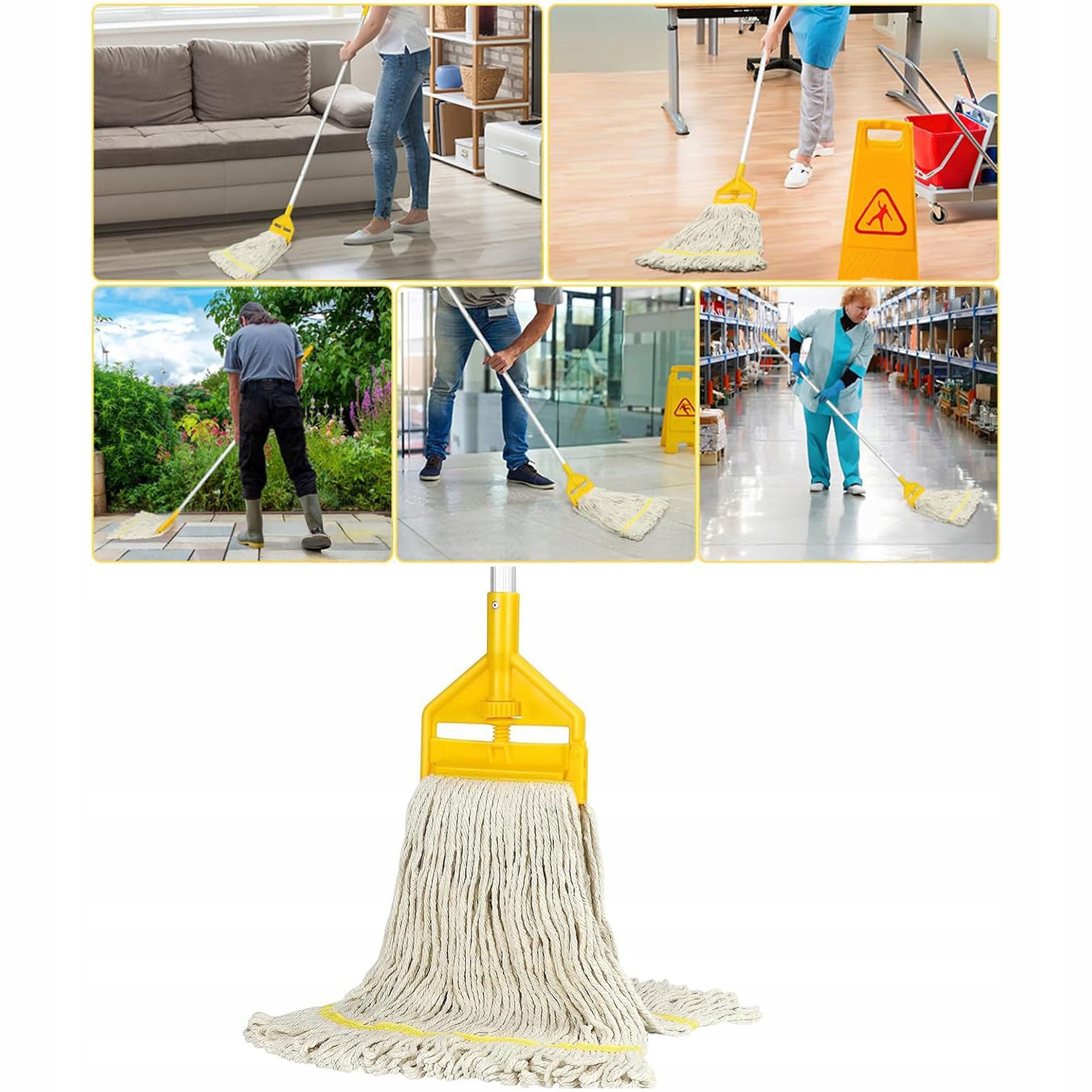 Наша кругла промислова волога швабра з довгою ручкою та великою головкою ідеально підходить для миття комерційних, промислових і побутових підлог.