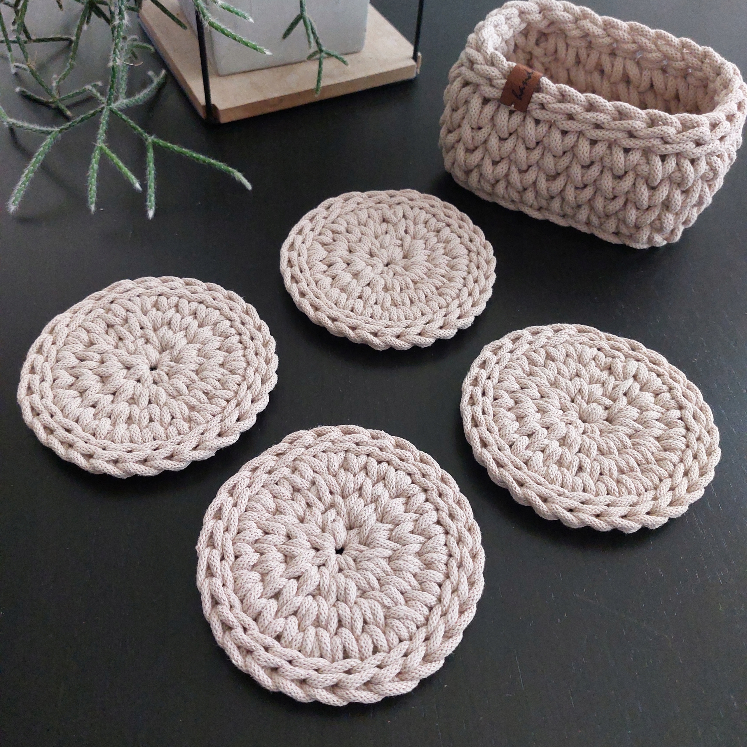 Я повинен запропонувати набір кружок для чашки (4 шт) з бавовняної струни з 3 -м Кошик виготовлений з бавовняної струни 5 мм.