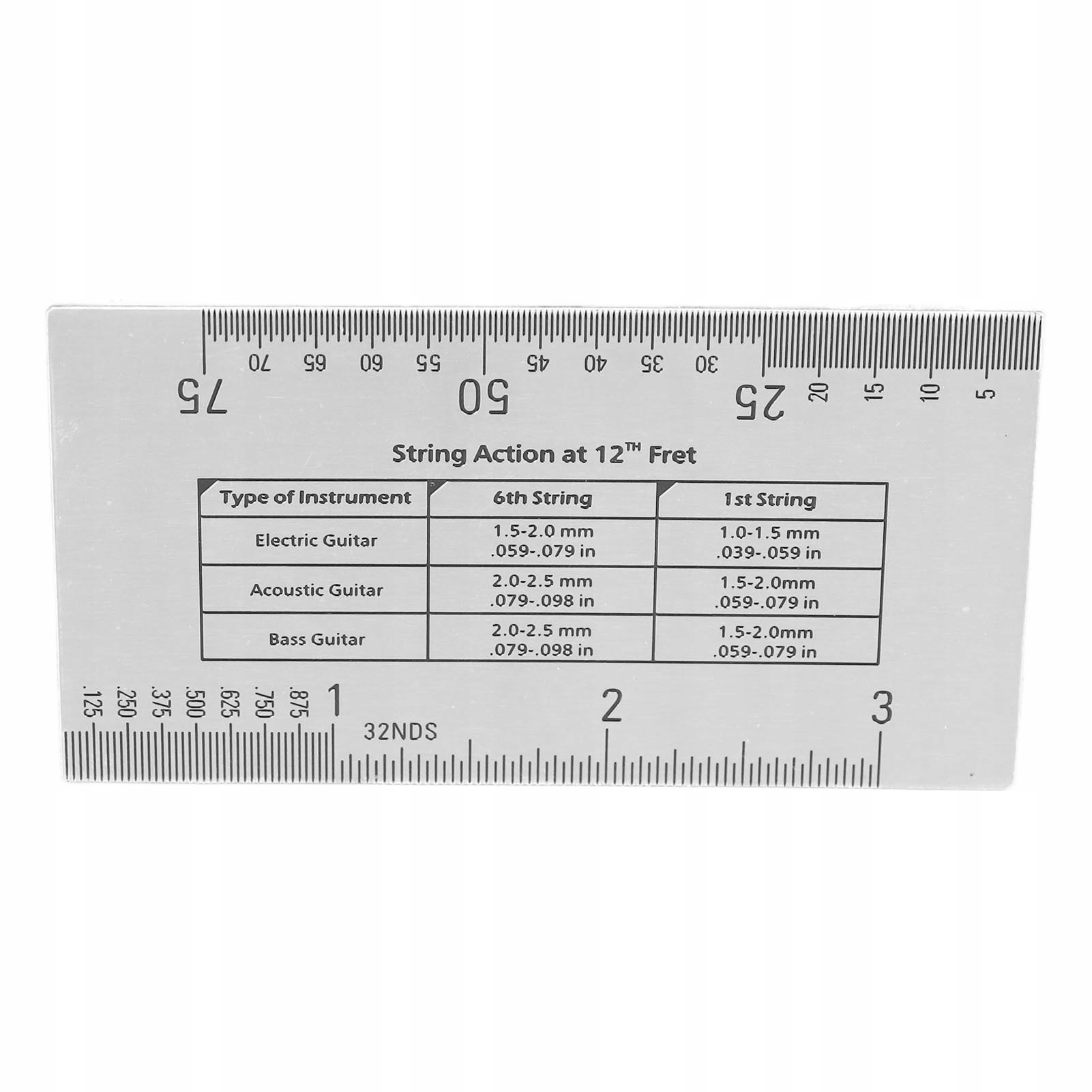 1. ОСНОВНА ФУНКЦІЯ: Ця лінійка в основному використовується для вимірювання висоти гітарної струни, регулювання якості звуку та зручності гри на гітарі.