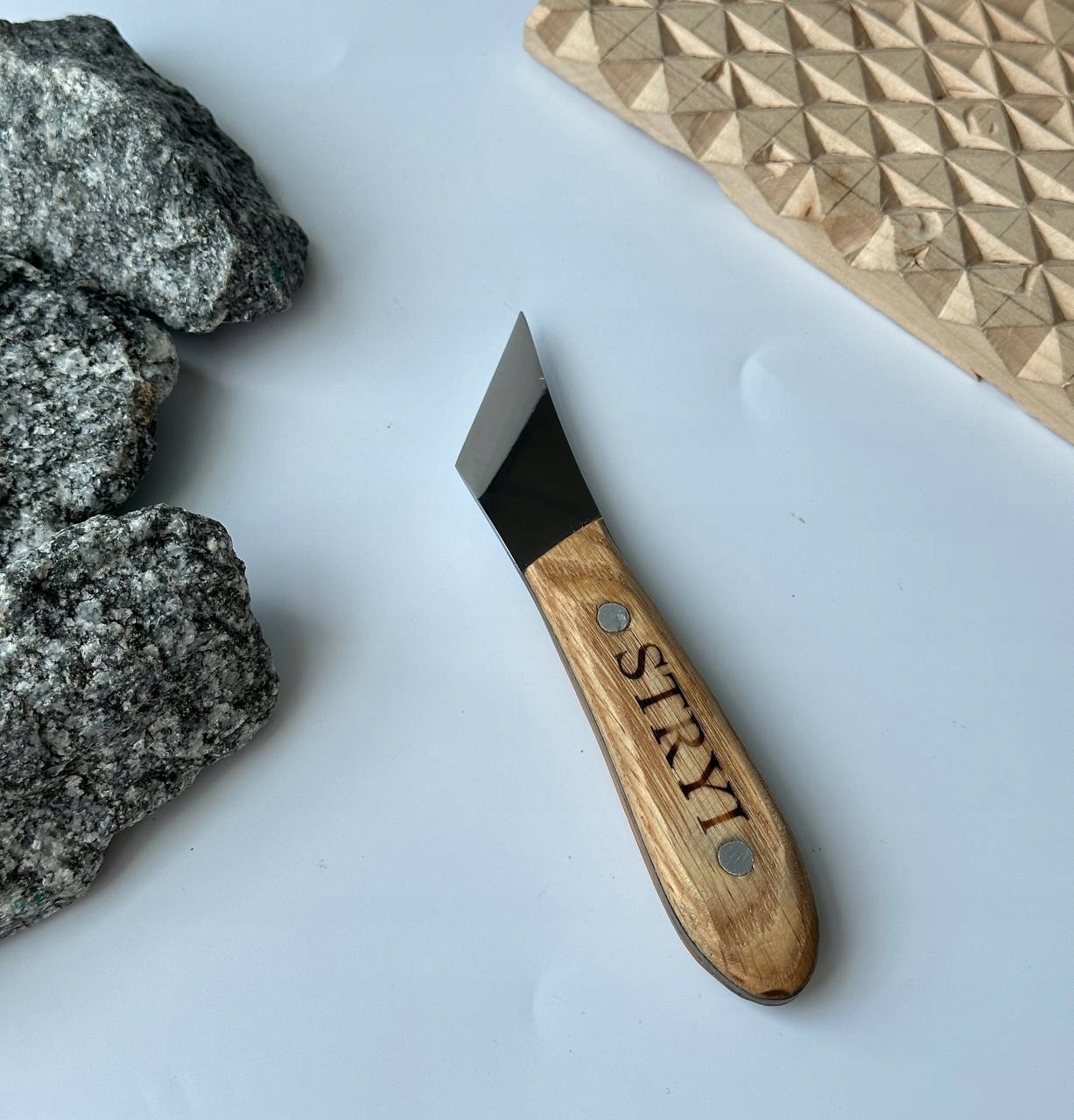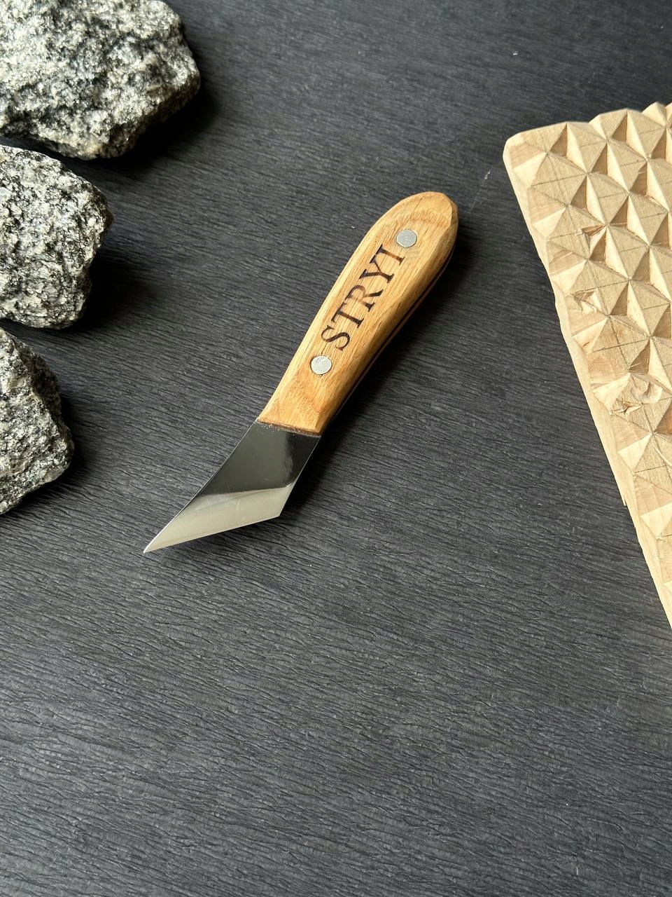 кожен ніж stryi проходить суворий контроль якості, включаючи випробування заточення, затвердіння та твердість металу, що забезпечує його міцність та точне розріз. stryi - замовити сьогодні і насолоджуйтесь точною та зручною різьбою в дереві!
