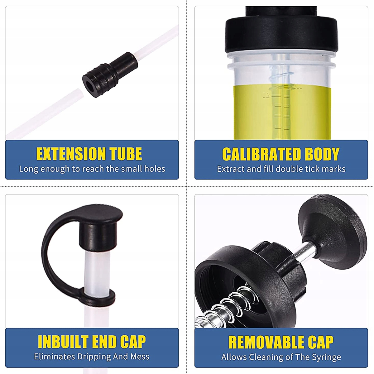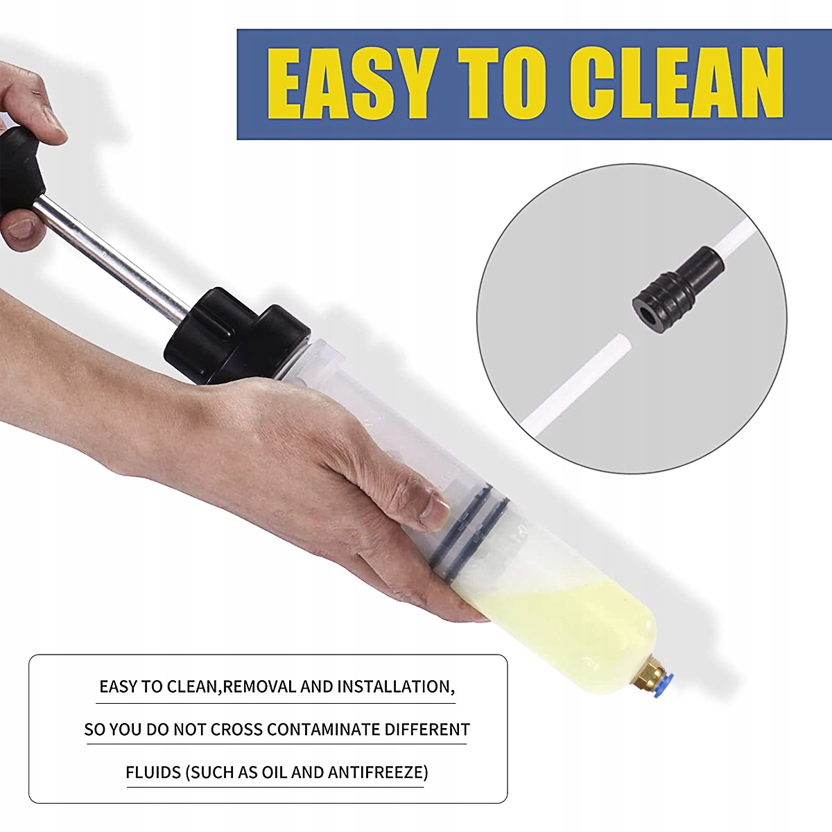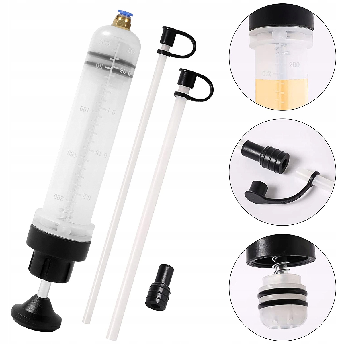 - ⭐️ ПОРШНЕВА ВЕНТИЛЯЦІЙНА СИСТЕМА - на протилежному кінці на шприці є поршень, який дозволяє створити вакуум всередині шприца і всмоктувати масло. Після вставлення шланга в потрібне місце і створення вакууму масло набирається в шприц, що дозволяє його безпечно та чисто видалити.
