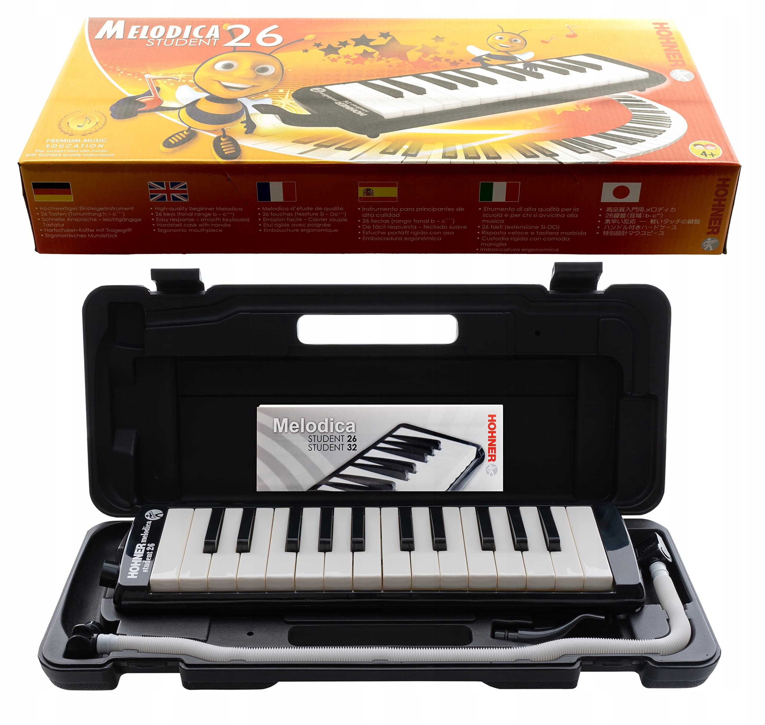 Ідеальна мелодія з 26 клавішами Hohner Student. Інструмент розміщено в міцному, ідеально підігнаному корпусі, що робить його практично неможливим пошкодити. Чохол і валіза для губної гармошки червоного кольору. У комплект входить мундштук і трубка, що дозволяє використовувати мелодію як клавіатуру. Підходить для дітей віком від 4 років завдяки меншій клавіатурі.