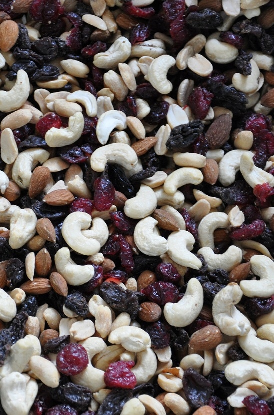 Горіхи кешью. Мають ніжний і солодкий смак. Багато хто вважає їх найсмачнішими горіхами. Вони містять багато цінних вітамінів, але варто відзначити дуже високий вміст мінеральних солей. Наукові дослідження показали, що 100 г горіхів кешью містять 6,68 мг заліза, 593 мг фосфору та 5,78 мг цинку. Ці значення одні з найвищих серед усіх сухофруктів. Якщо додати його вишуканий смак, горіх кешью є надзвичайно цінним інгредієнтом студентської суміші.