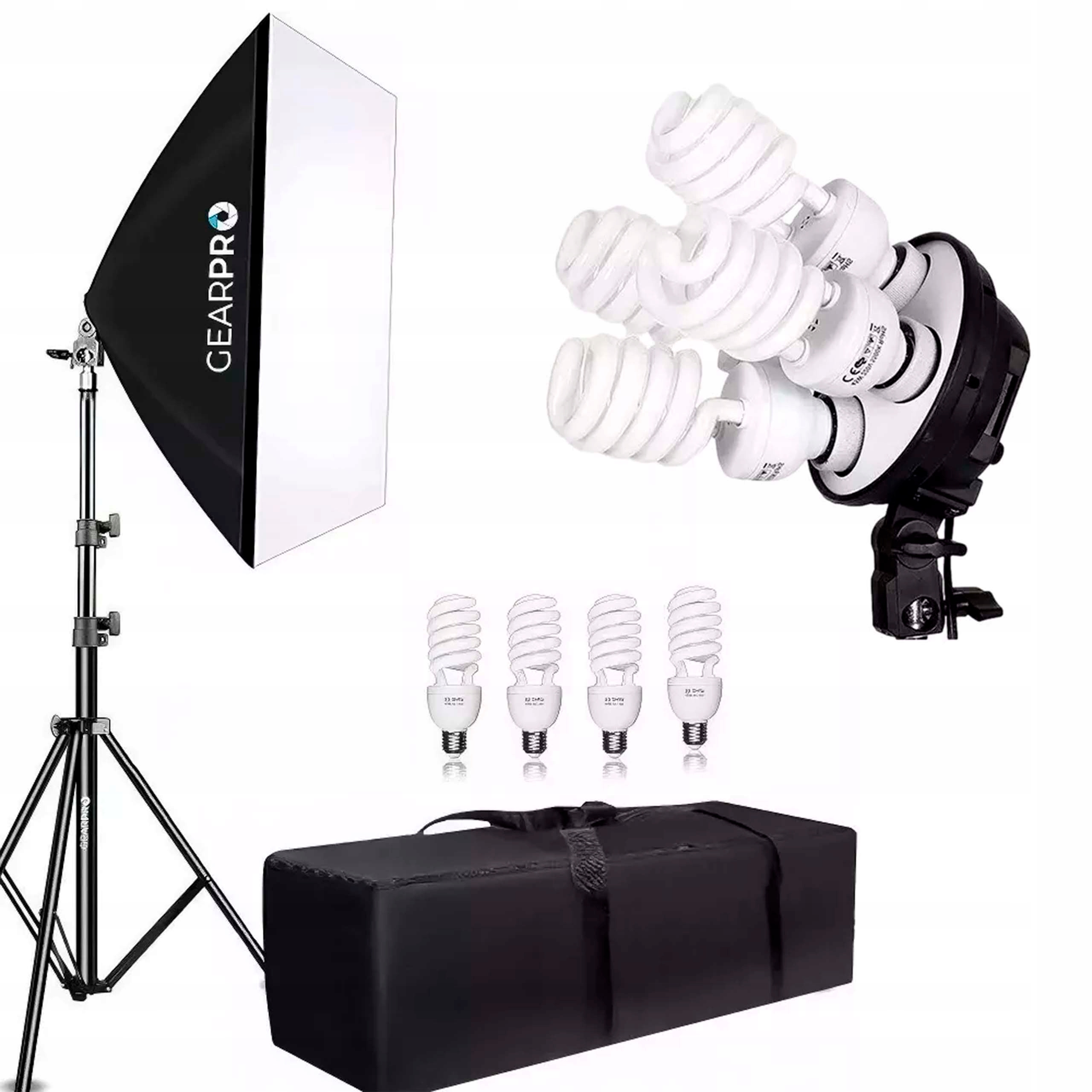 ✔️ Що ви отримуєте? 1x софтбокс лампа, 1x штатив, 4x 45 Вт лампи, 1x спортивна сумка
