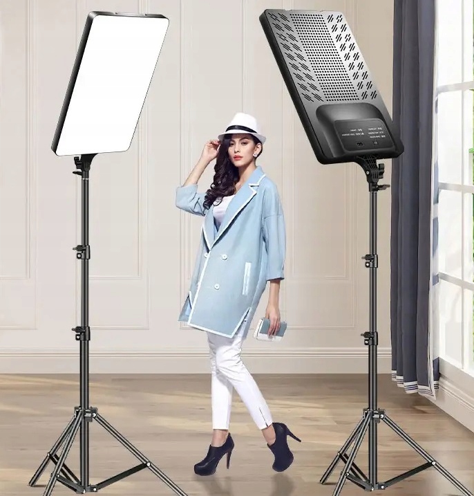 - Сучасна світлодіодна панель потужністю 100 Вт, розмір панелі аж 56 х 28 см! Ідеально підходить для використання в студії та на відкритому повітрі.