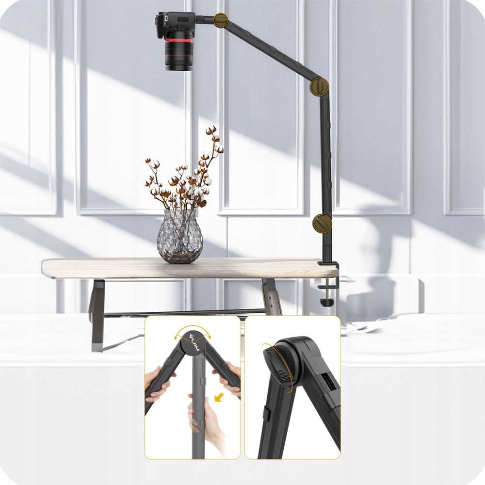 ✔️ СТАБІЛЬНІСТЬ- Міцна алюмінієва конструкція забезпечує стабільне встановлення вибраних пристроїв і аксесуарів. Навантаження на руку до 1,5 кг. Він без проблем впорається навіть із важкою дзеркальною камерою.