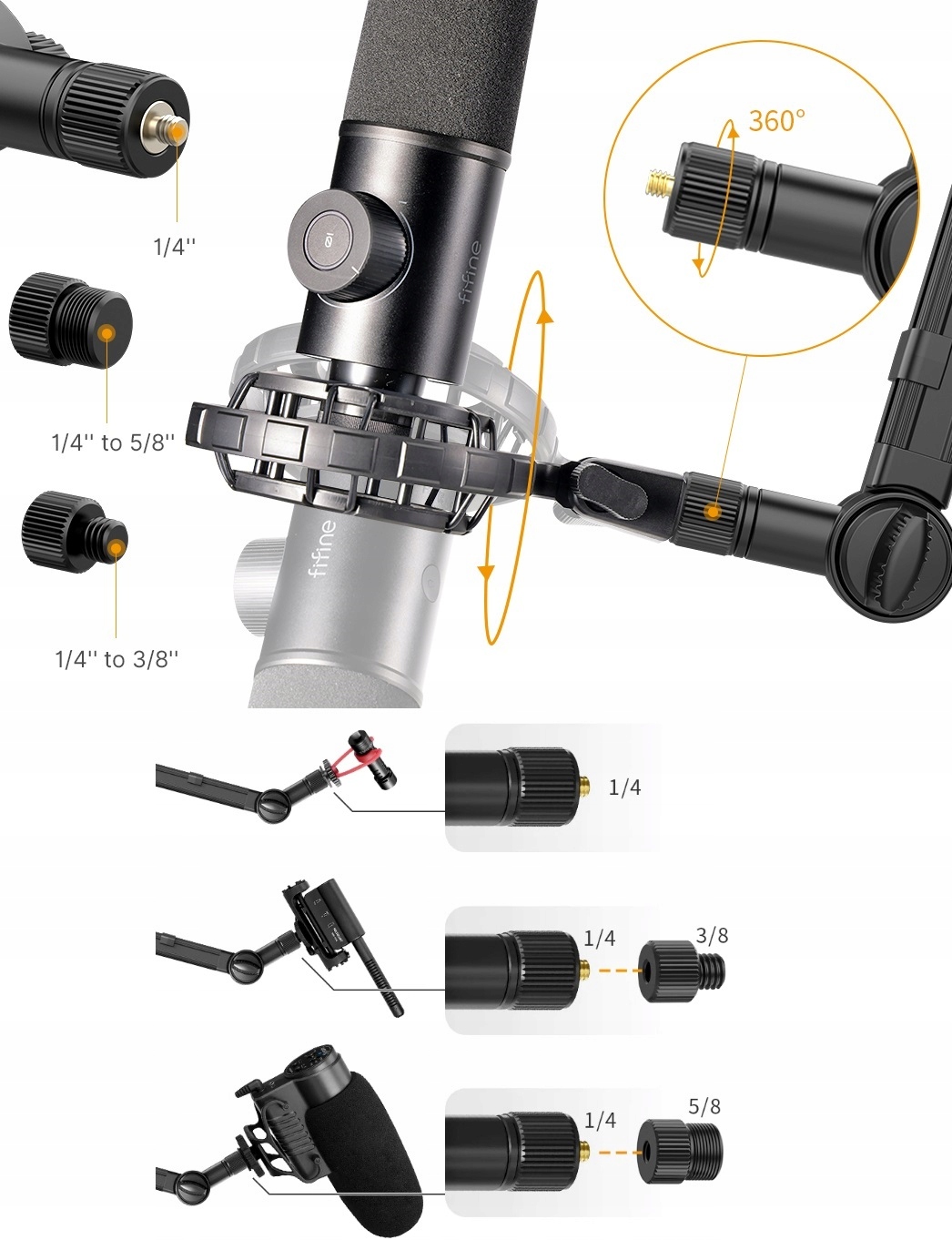 Мікрофон та будь-які інші аксесуари кріпляться до тримача за допомогою: