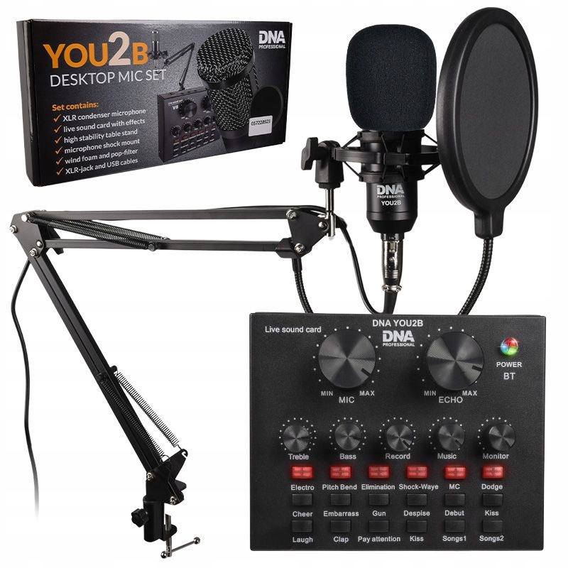 DNA YOU2B - дуже хороший набір для запису звуку на комп'ютері та різноманітних живих записів. Він ідеально підходить для запису подкастів, стрімів, текстів за кадром, контенту для сайтів соціальних мереж, а також вокалу та різних типів акустичних інструментів. ✅ В набір входить конденсаторний мікрофон, протиударний тримач мікрофона, два шумопоглинаючі фільтри, тримач штанги для зручності встановлення та роботи з мікрофоном , а також портативний зовнішній аудіоінтерфейсз можливістю бездротової роботи від батареї, з додатковими вбудованими звуковими ефектами (наприклад, сміх, оплески глядачів), що робить YOY2B також ідеальним робочим інструментом для мобільних діджеїв - с.