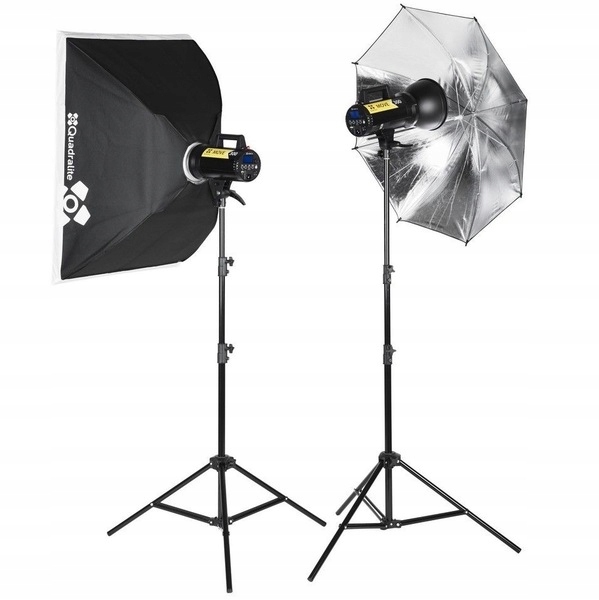 Quadralite Move X 300 Kit — це набір базового студійного обладнання на основі дуже популярних спалахів 300 Вт. Софтбокс 60 х 90 см, що входить до комплекту, ідеально підходить як джерело м'якого світла для портретів. Крім того, у комплект Move X 300 входять два студійних штативи з максимальною висотою 200 см і срібна парасолька.