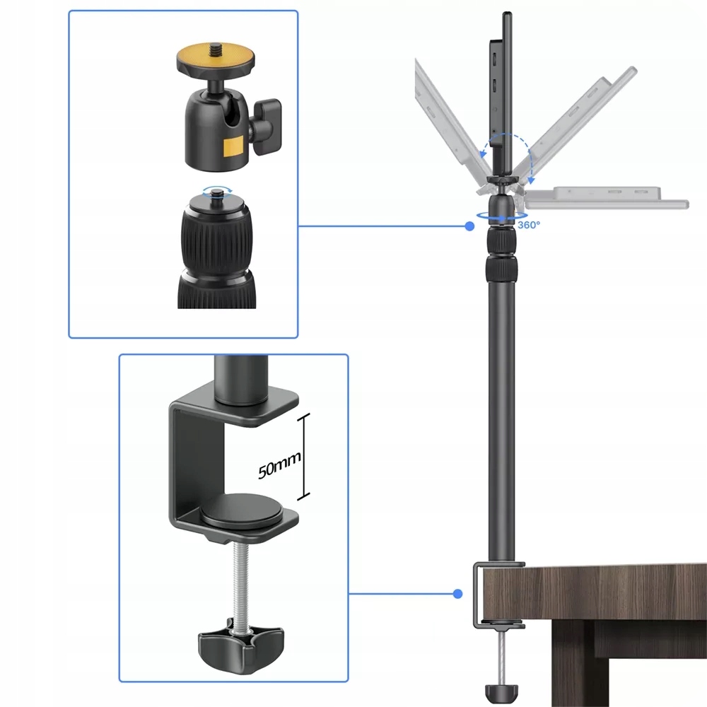 ✔️ БЕЗПЕКА ТА СТАБІЛЬНІСТЬ: Монтажний затискач із силіконовою накладкою захищає стільницю від подряпин і водночас забезпечує надійну фіксацію. Можливість встановлення додаткових аксесуарів, наприклад, рейок Ulanzi PT-7 або PT-23, на тому ж різьбовому з’єднанні.
